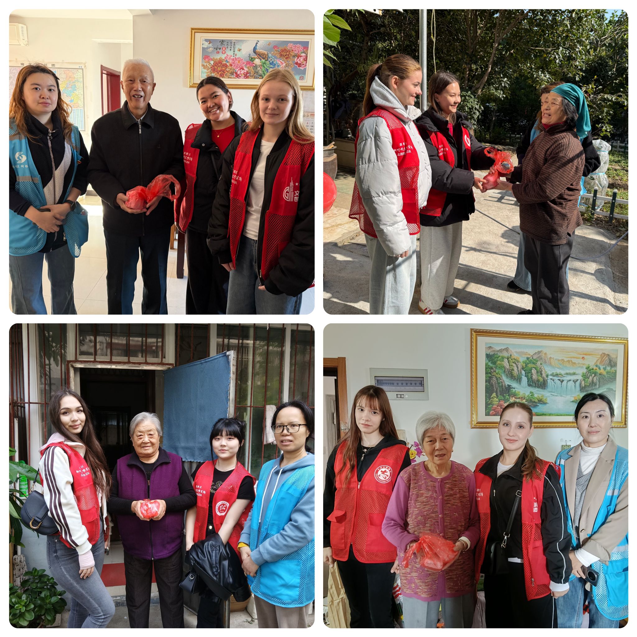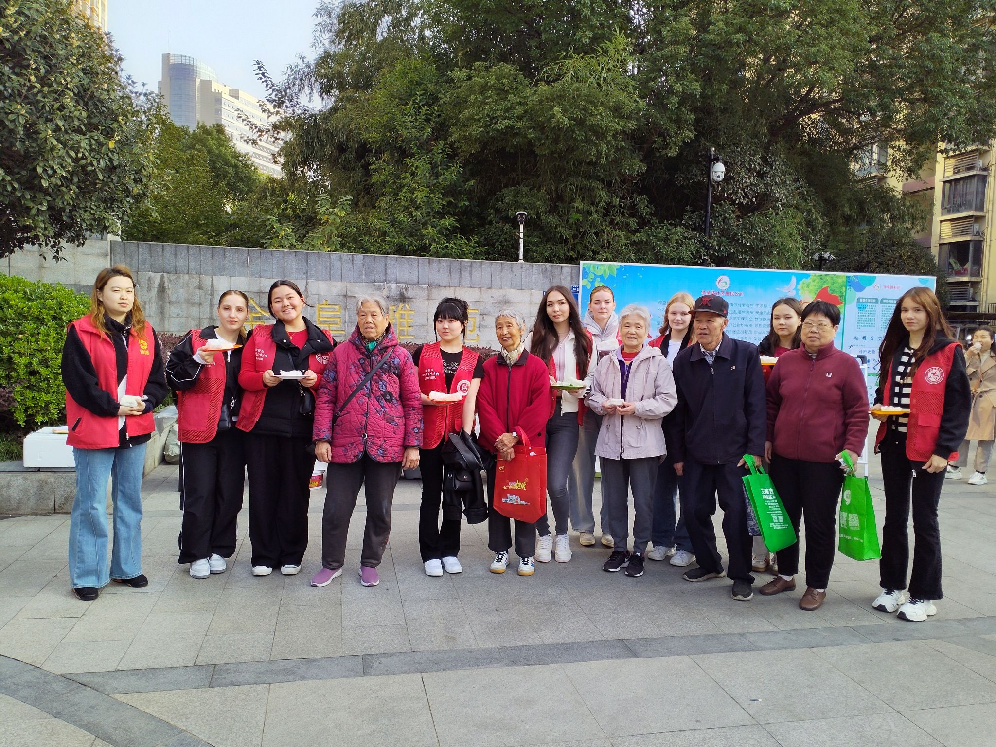 中国传统的敬老节日——重阳节即将来临之际,10月28日上午,南京财经大学国际教育学院组织8名外国留学生走进挹江门街道钟阜路社区,积极参与“九九重阳惠民生 凝聚爱心敬老情”便民服务活动,体验中国传统节日的独特魅力,领悟“尊老、敬老、爱老、助老”的中华传统美德,赢得了社区居民和工作人员的广泛赞誉。