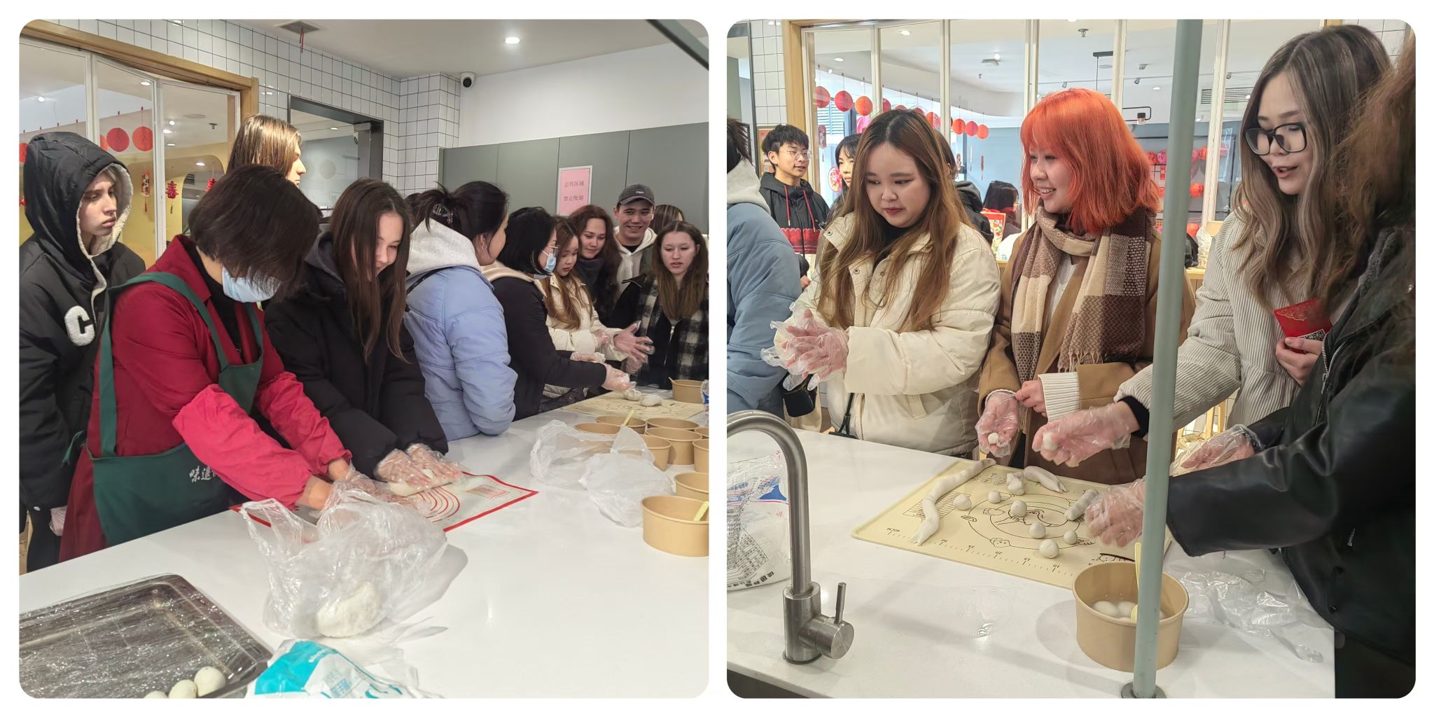 活动的压轴环节是亲手制作元宵。在社区工作人员的示范下,留学生们揉面团、包馅料、搓圆球,热情高涨。品尝亲手制作的热气腾腾的元宵甜在口中,文化的温度暖在心间。