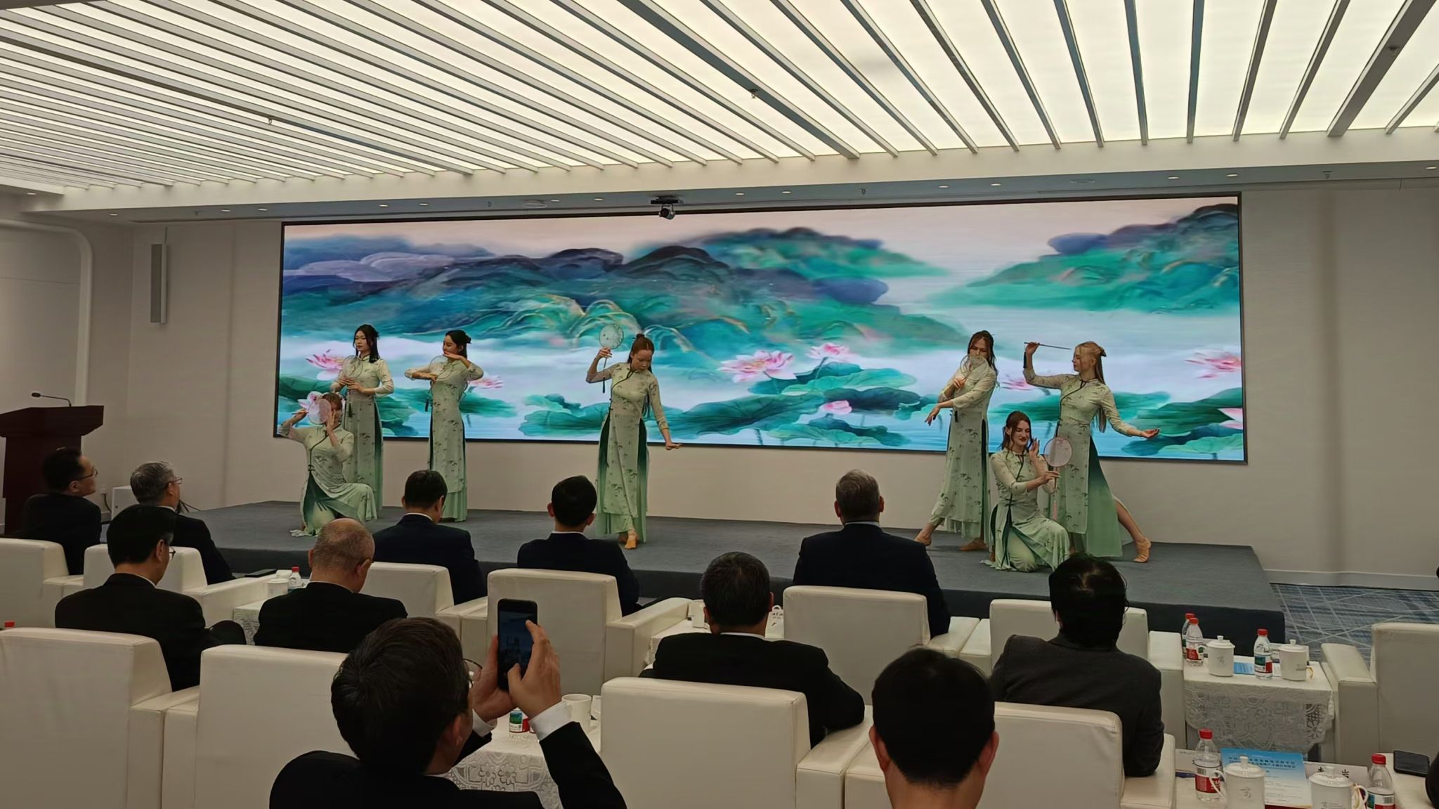 活动现场,文艺表演精彩纷呈。阿拉木图州民间歌舞团带来了独具中亚特色的表演,展现了浓郁的异国风情;南京财经大学选送的中国古典舞蹈《团扇轻舞》优雅动人,7名外国留学生轻盈的身姿、灵动的舞步,仿佛将中国古典文化的韵味娓娓道来。南京理工大学等高校的留学生也纷纷登台,带来了各具特色的精彩表演,为活动增添了多元的文化色彩。而中亚学生合唱环节更是将现场气氛推向了最高潮,留学生们用悠扬的歌声传递着友谊与团结,让整个会场充满了温情。